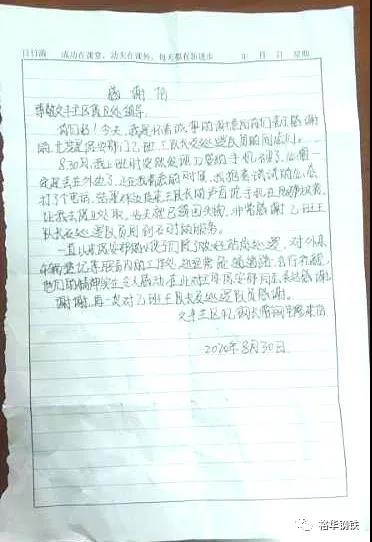 初秋的天空湛藍遼闊,云淡風輕。9月1日上午,一封尚帶余溫字跡工整的感謝信被送到文豐保衛處,表達了一名普通職工對保衛處工作人員由衷的感激和深深的贊許。