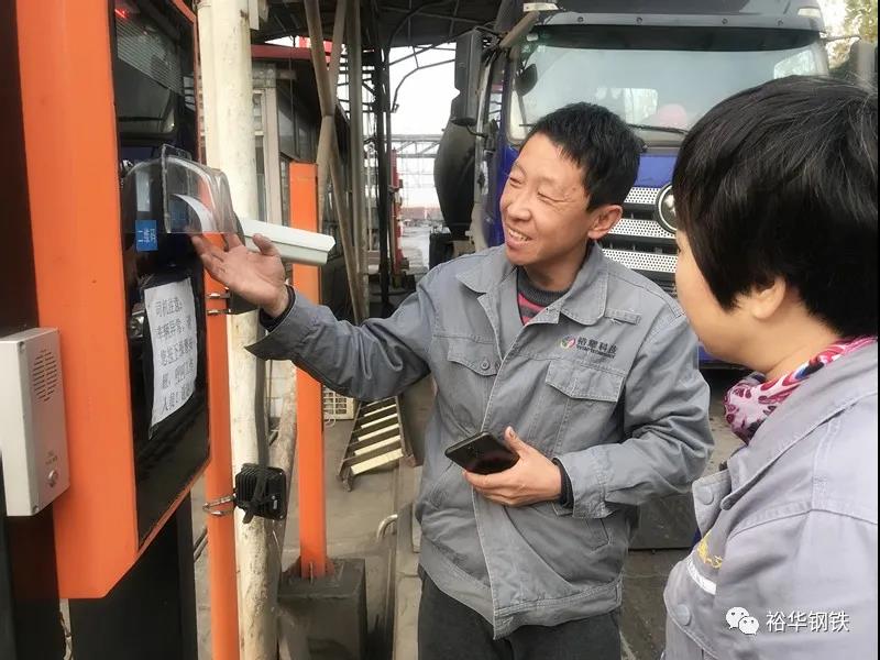 在裕華鋼鐵西門崗,一輛輛重型載貨車來來往往進出有序。車輛駛上地磅后,司機師傅下車掏出手機對著一個紅色箱體掃了一下,磅單便自動打印出來,司機拿上磅單隨后駕車進入廠區,整個過程用時不到一分鐘。這就是裕華鋼鐵兩個月前投入運行的無人值守系統。